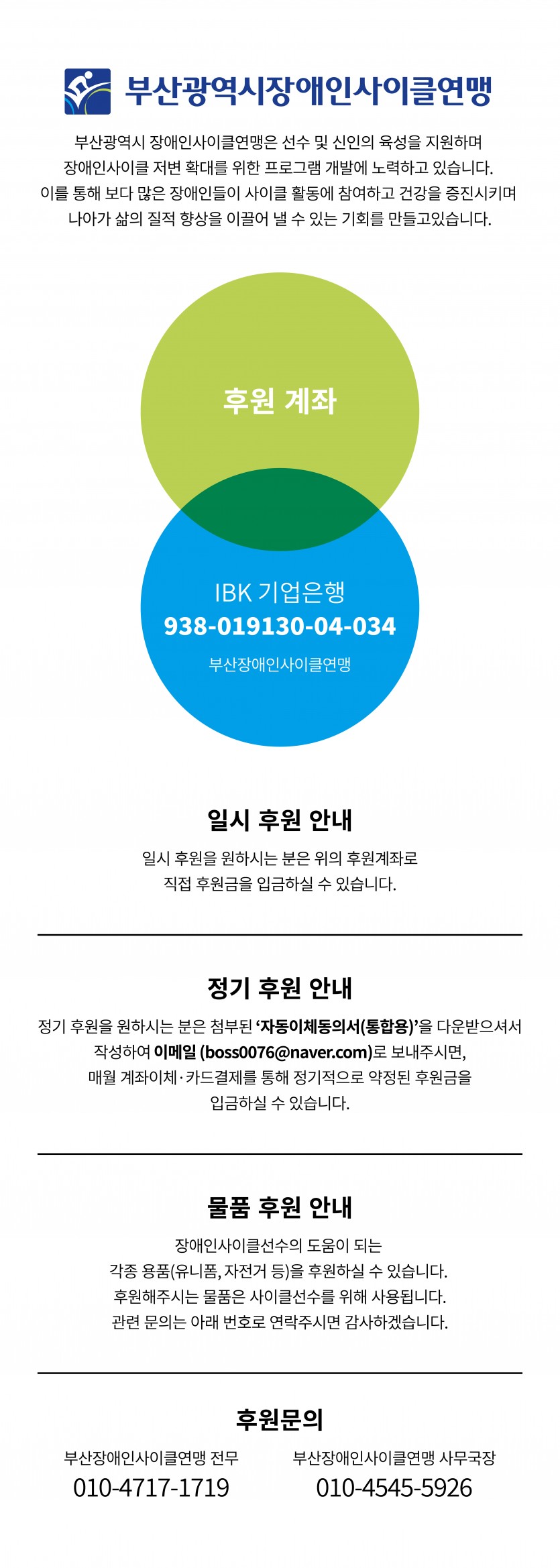 부산광역시장애인사이클연맹 후원/신청 안내