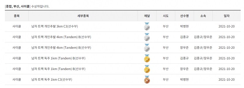 제41회 전국장애인체육대회 도로독주시합 결과